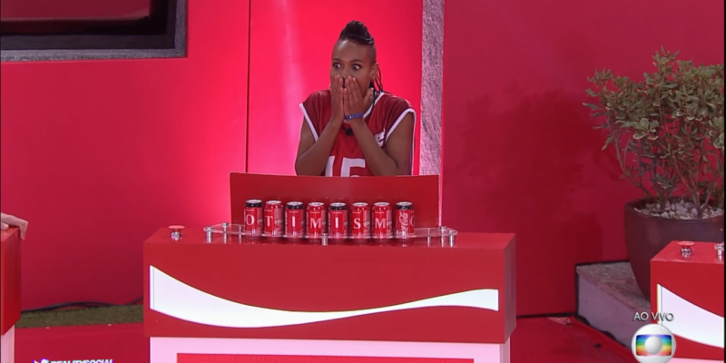 A dinâmica foi a seguinte: na primeira parte, os brothers tinham que pegar uma lata de Coca-Cola e montar a palavra no qual faltam a letra. Nesta fase, o Nego Di foi eliminado por conta de ter trocado de letra quando já tinha batido.