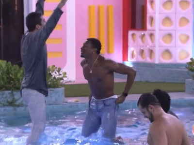 BBB 22: Gustavo, Paulo André e Pedro Scooby pulam na piscina para comemorarem volta do paredão e cantam MC Poze do Rodo