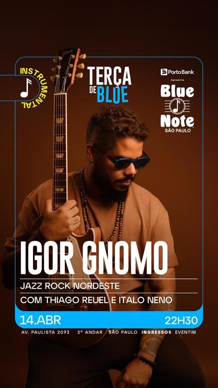 Um dos principais representantes da música instrumental contemporânea produzida na Bahia, o guitarrista e compositor Igor Gnomo sobe ao palco do Blue Note São Paulo no dia 14 de abril, terça-feira, às 22h30. Pela primeira vez na prestigiada casa paulistana, o artista apresenta o show “Jazz Rock Nordeste”, uma imersão sonora que subverte a geografia musical brasileira.