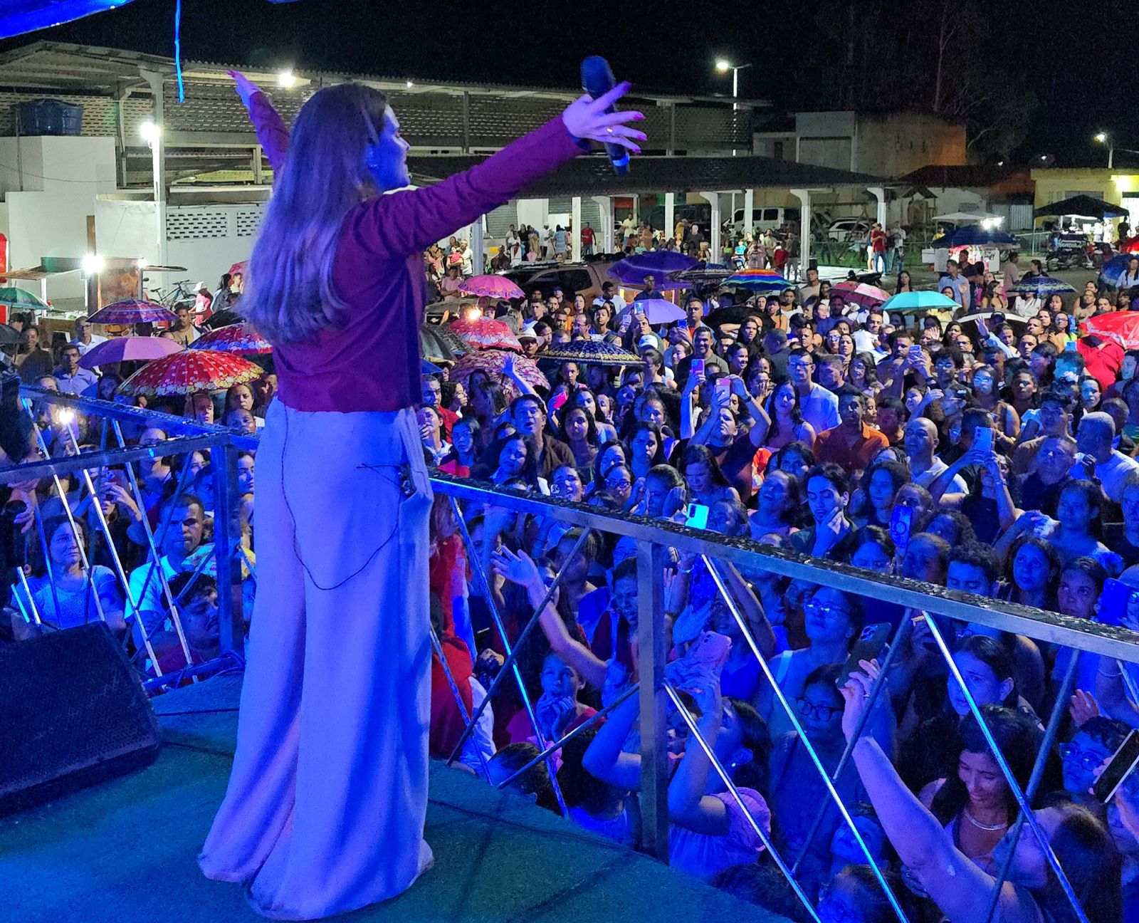 Mesmo em meio às fortes chuvas registradas durante a programação, o público permaneceu presente e demonstrou devoção e alegria, transformando a noite em um verdadeiro momento de espiritualidade. Ao som da cantora Aline Barros, milhares de pessoas louvaram e adoraram, em uma atmosfera descrita por muitos como uma verdadeira chuva de bênçãos sobre a cidade.