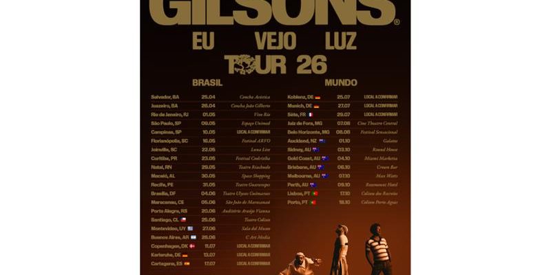 O trio Gilsons começou 2026 apresentando um novo capítulo de sua história. Comandado por José, João e Fran, o grupo abriu caminhos para o novo álbum, que chega em breve às plataformas, lançando as faixas “Minha Flor”, escrita em parceria com Arnaldo Antunes e com participações de Caetano Veloso, Moreno Veloso e Tom Veloso; além de “Bem Me Quer”, escrita com Narcizinho Santos, compositor parceiro do sucesso Várias Queixas.