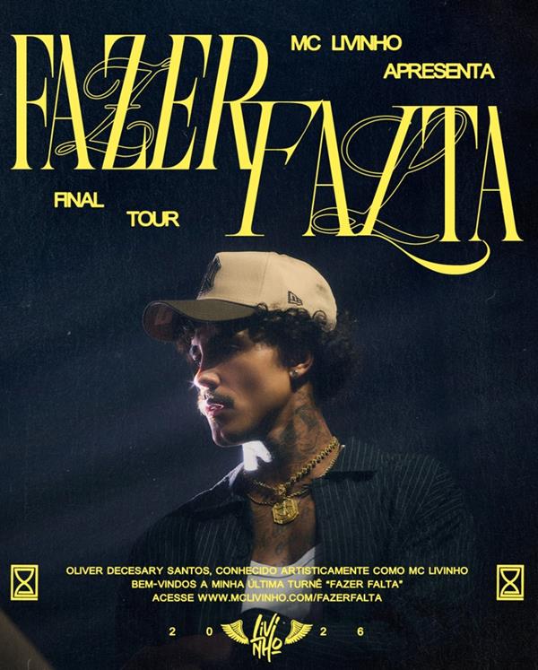 Após anunciar na última semana que fará uma pausa na carreira, o cantor MC Livinho prepara uma turnê especial de despedida, batizada de “Fazer Falta”, título escolhido não por acaso. O nome faz referência a uma das músicas de maior sucesso do cantor, um verdadeiro marco em sua trajetória e que agora ganha novo significado nesse momento de transição.