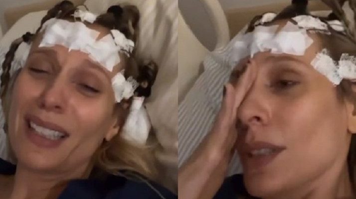 “Vocês acreditam numa coisa dessas, gente? Fui internada ontem, tive uma convulsão. Eu caí no chão e bati minhas costas”, conta, deitada na cama e com eletrodos na cabeça.