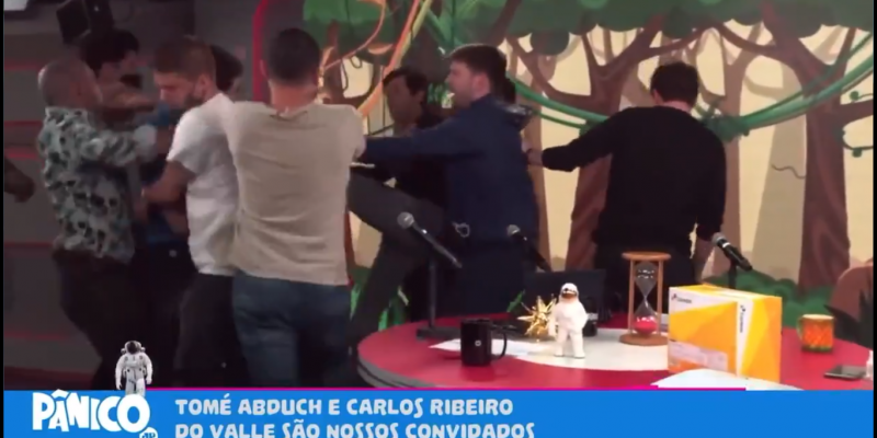 Tudo começou quando André chamou o Tomé de “chorão” por ficar chorando por político, fazendo com que o clima entre os dois fechassem e o empresário partisse para cima do radialista. No momento, até rolou uma sonoplastia do “Programa do Ratinho” e o outro integrante, Rogério Morgado, ficou festejando que “o pau ia comer”.